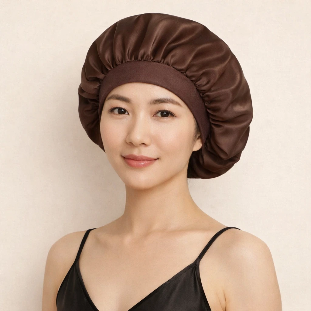 Le bonnet de satin ne se limite pas à la nuit. Il peut aussi être utilisé lors de moments de détente à la maison. Grâce à sa bande élastique, il s’adapte facilement à votre tête et reste bien en place sans serrer. Vous bénéficiez ainsi d’un maintien confortable et sécurisé, même en mouvement.